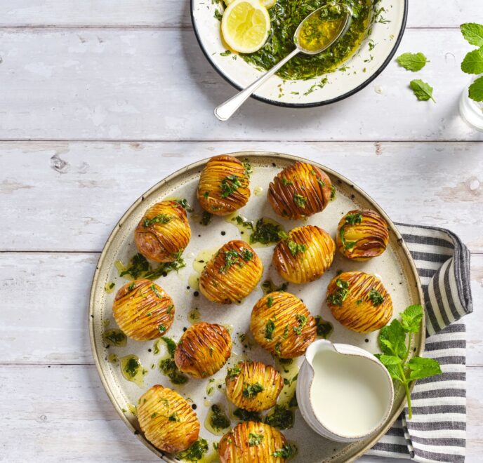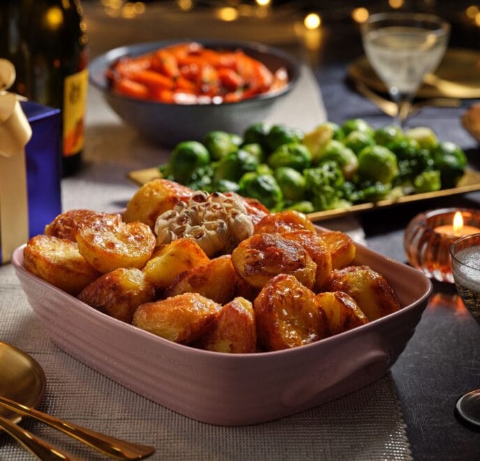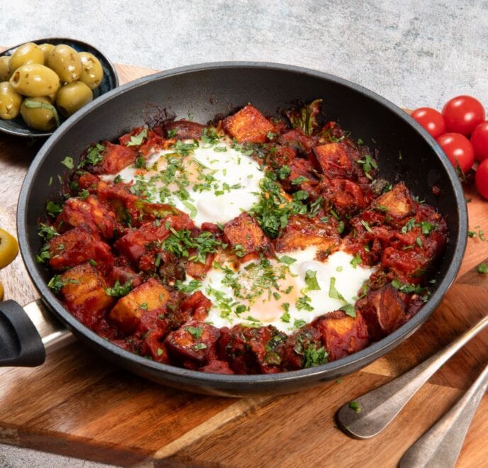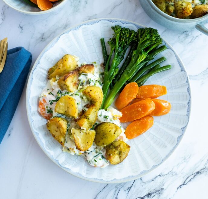 Peel and chop potatoes into same sized pieces, add to pan of water, bring to the boil and simmer for 12 – 15 minutes. Drain, then mash, stir in the egg yolk, mix and season well.