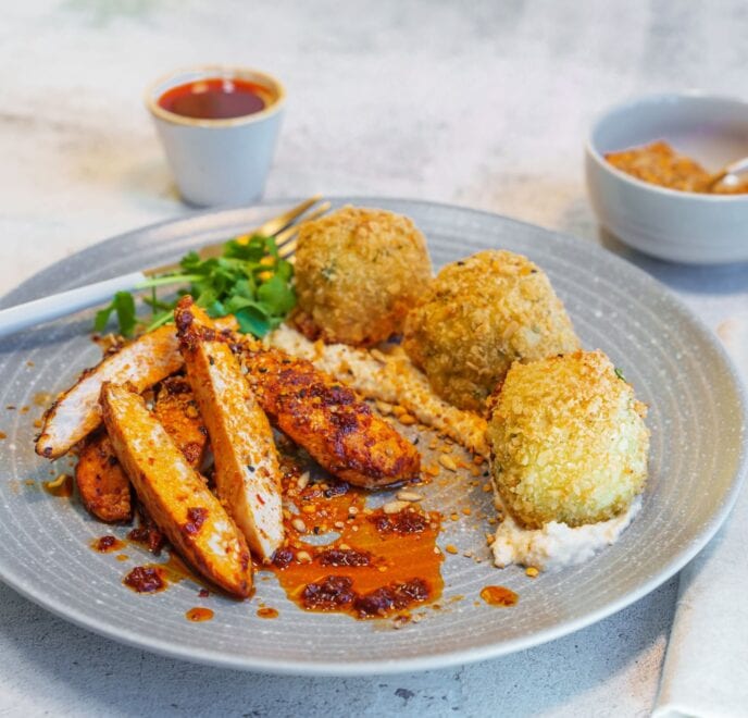 Finely chop the red pepper and spring onions and add to the mash, along with the sweetcorn, cayenne and paprika. Mix well then shape into four fritters. Chill for an hour.