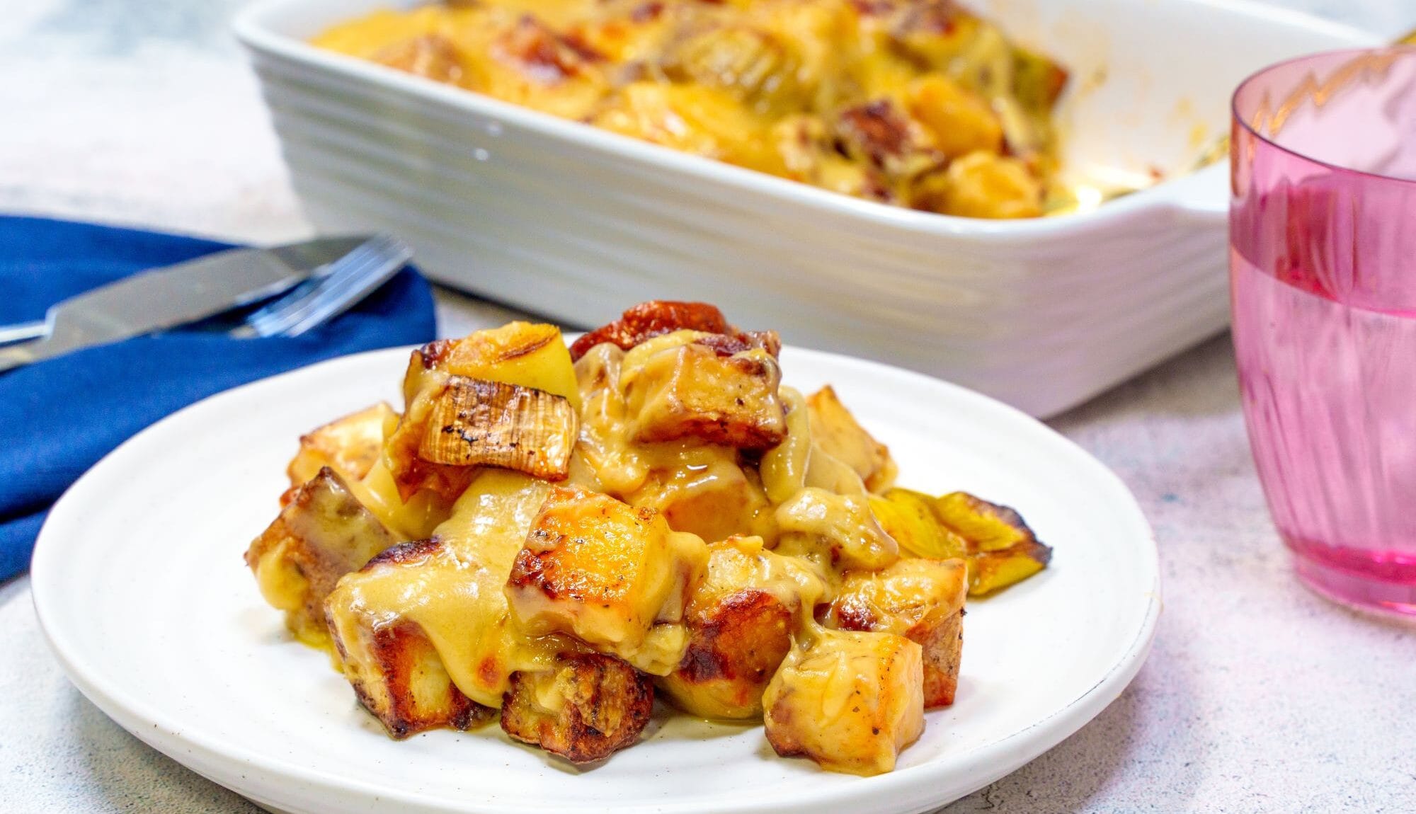 In a saucepan over a medium heat, melt butter until it begins to foam, mix in the flour and whisk for one minute. In stages, whisk in the brown ale until a paste is formed. Add the cheese, mustard and Worcestershire sauce and continue to whisk until the cheese has melted. Season to taste, pour the thick sauce over the potato mix and pop under a preheated grill for 2 – 5 minutes to brown the top.